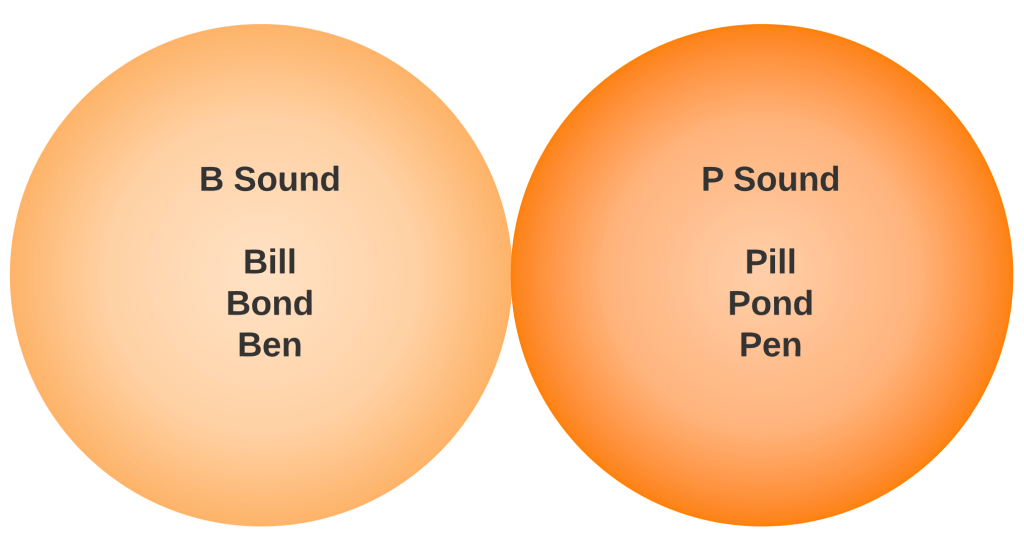| The B Sound: Place your lips together lightly and open the jaw to release. The P Sound: Place your lips together and open your jaw quickly. Let the air out. P is similar to K because the release of air is part of the sound. P is certainly different from B, but it is not a harsh sound. If you struggle to differentiate B and P, make sure to have that slight bit of air on your P sounds. It might help to imagine a small H after the P. B and P as Sound Pairs: B and P do not interact. B = B and P = P. |