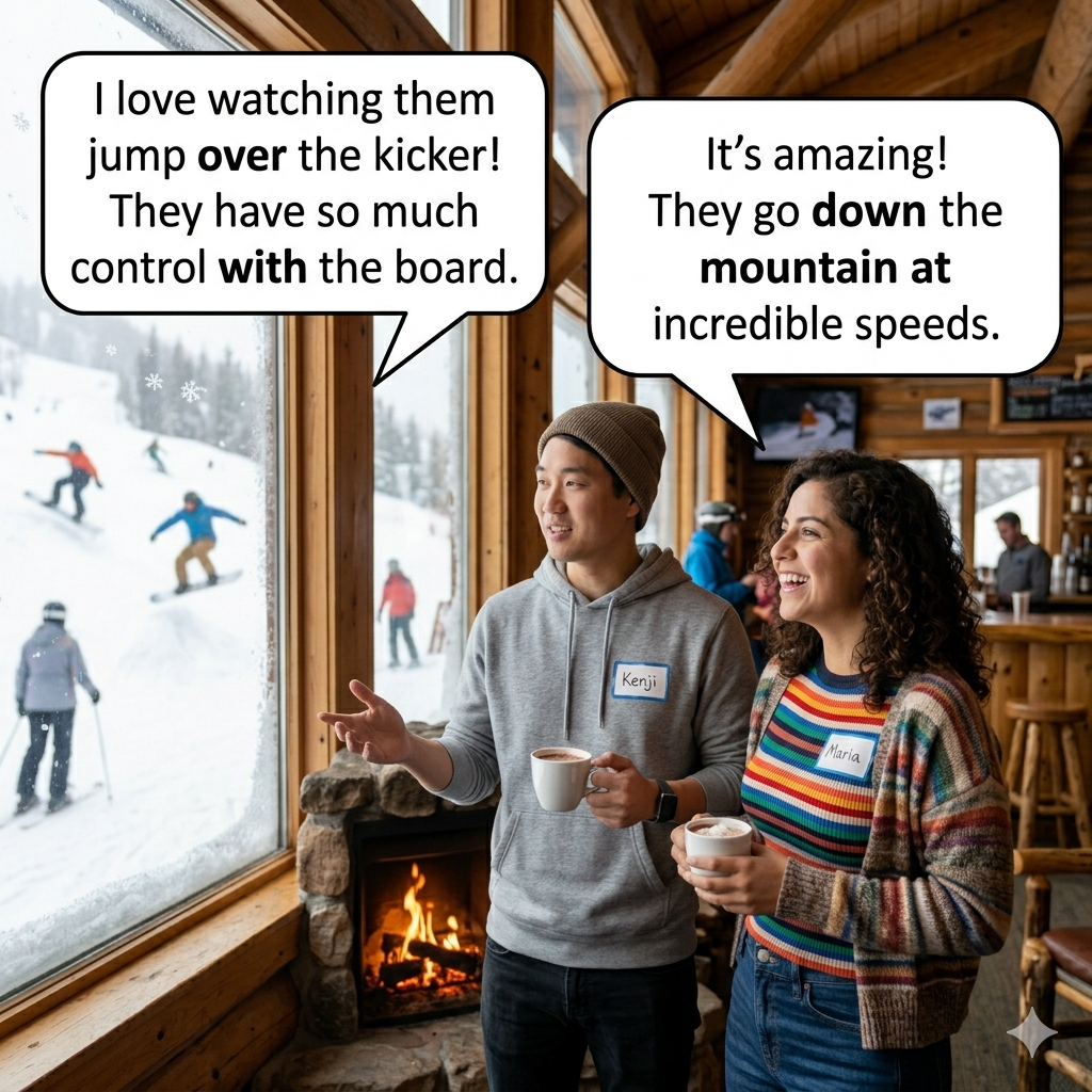 - Over (Movement/Coverage): Use over for movement across something or covering it.